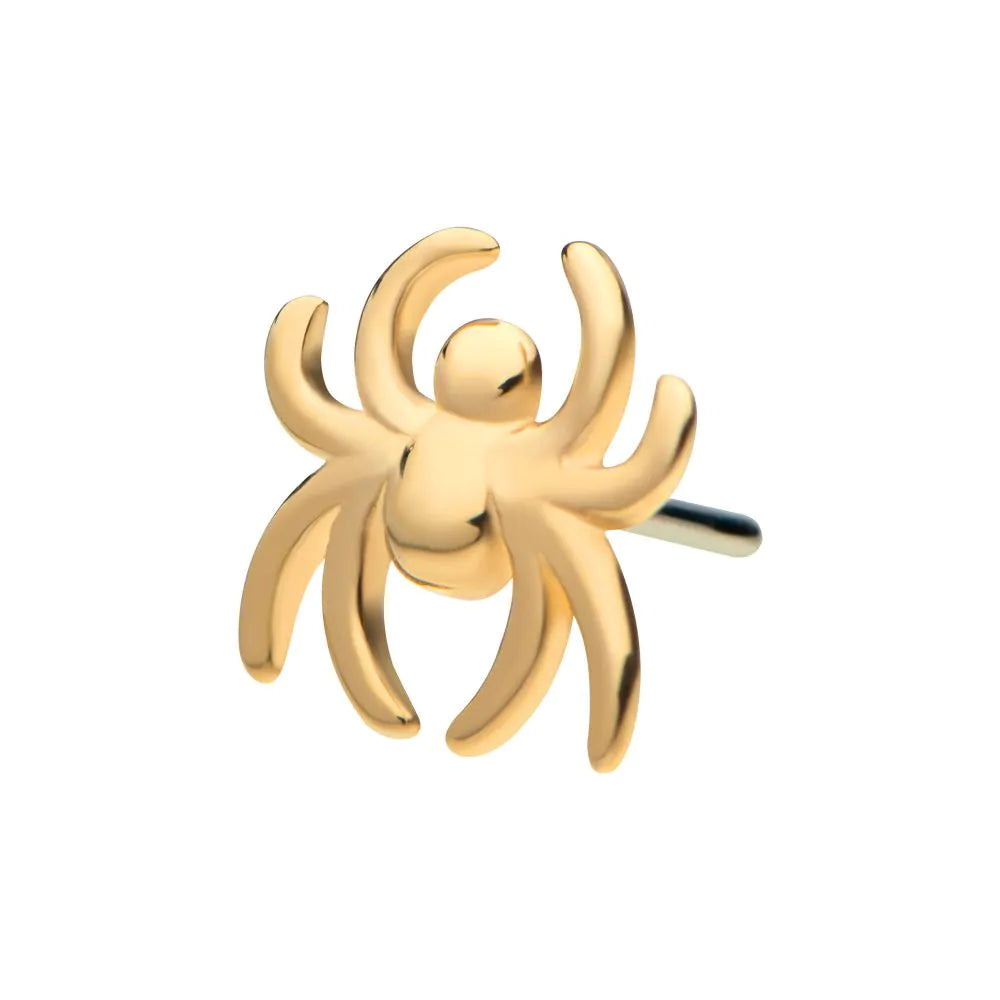 14Kt Gold Threadless with Spider Top is made of solid 14kt nickel-free Yellow Gold with durable 316LVM ASTM F-138 Implant Grade Steel Pin designed to be practical and easy to use. Fits all sizes of pins and bases in our threadless body jewelry line. Pin Size: 0.45mm x 4.7mm.