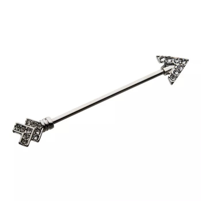 14g 1 3/8" Surgical Steel with Clear CZ Arrow Industrial Barbell.