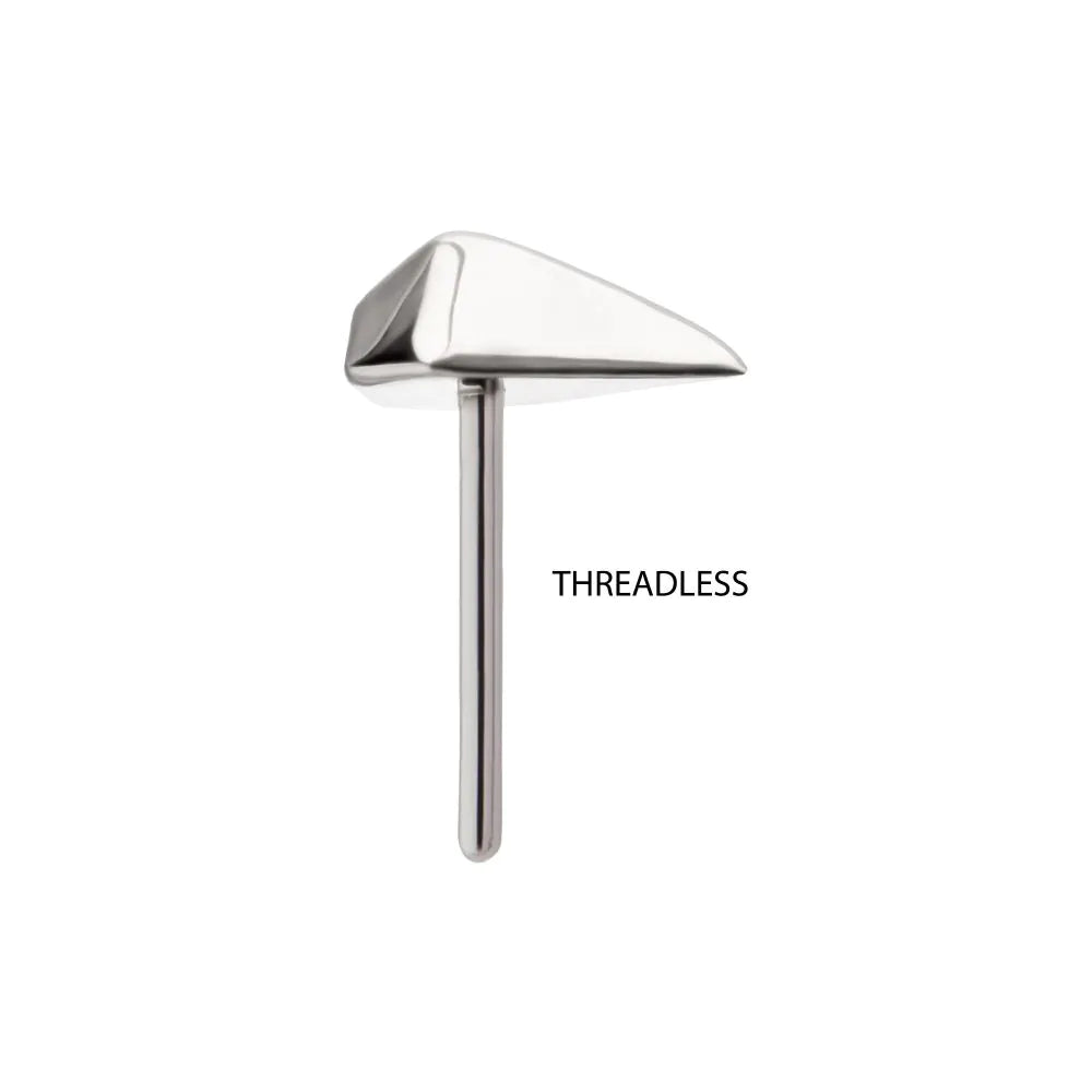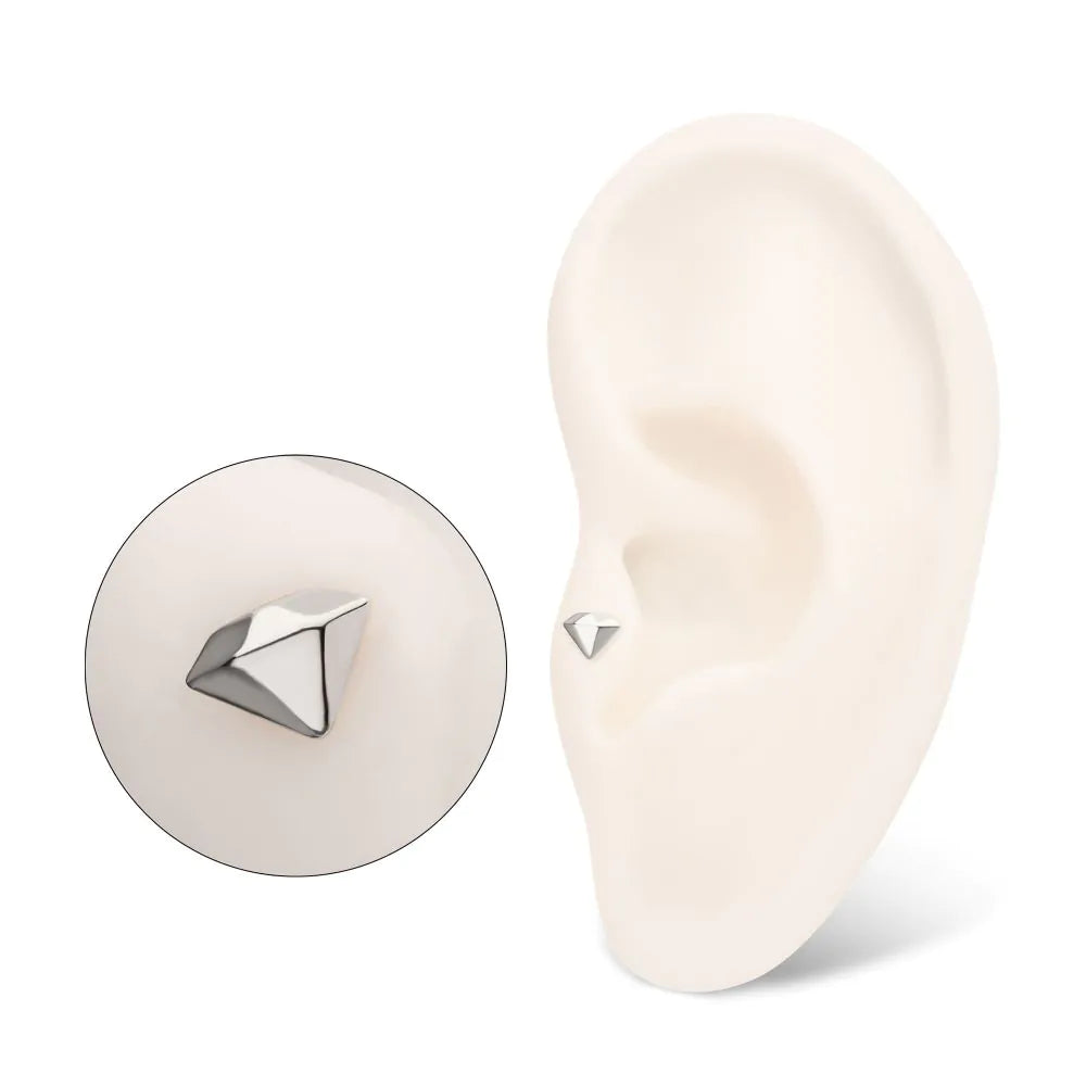 Titanium Threadless 3D Diamond Shape Top. Made from Implant Grade Titanium TI-6AL-4V ELI ASTM F136 with 25g durable Titanium Pin designed to be practical and easy to use. Fitting all sizes of pins and bases in our threadless body jewelry line. Pin Size: 0.45mm x 4.7mm.